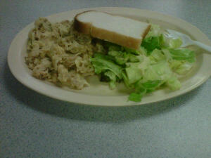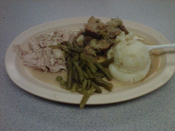 New Year’s Day evening meal wasn’t the purtiest thing as you can see. It did have turkey, though, and it was a warm refuge out of the biting cold, so I certainly wasn’t complaining. I got there at 6:40 pm when they were giving their bible service…some guy ranting about apocalypse and conspiracy…and used the time to get feeling back in my fingers and toes till chow. New Year’s Day chow with no cookie…unfortunately.