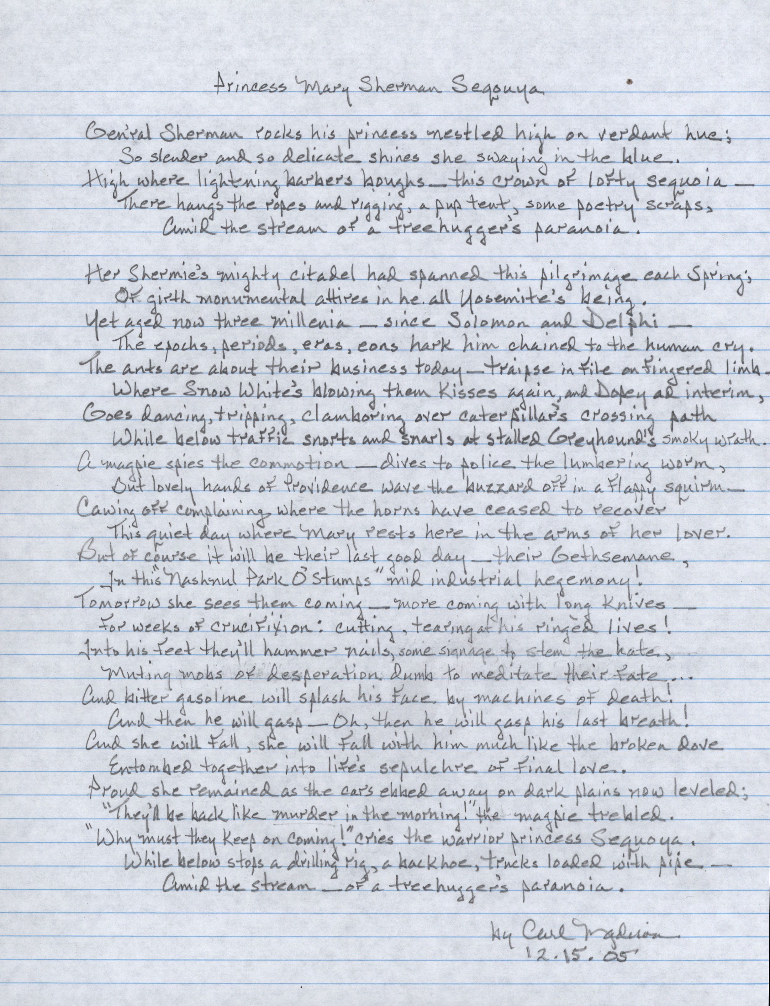 I promised Pat I’d post a couple of my poems from there; this one is to any tree hugging Marys I’ve ever been lucky enough to have hugged me.